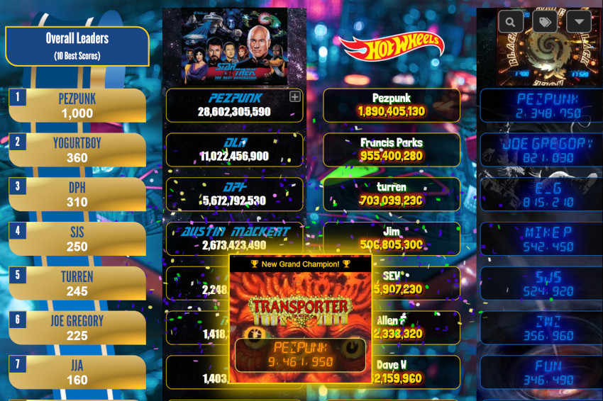 Very cool new feature today! Whenever any new score is entered via any device (including Stern Insider Connected, if synced), your leaderboard will announce that new score by throwing some confetti and showing an alert popup. The duration of this popup is configurable, and the confetti can be disabled if it's too taxing on your device.